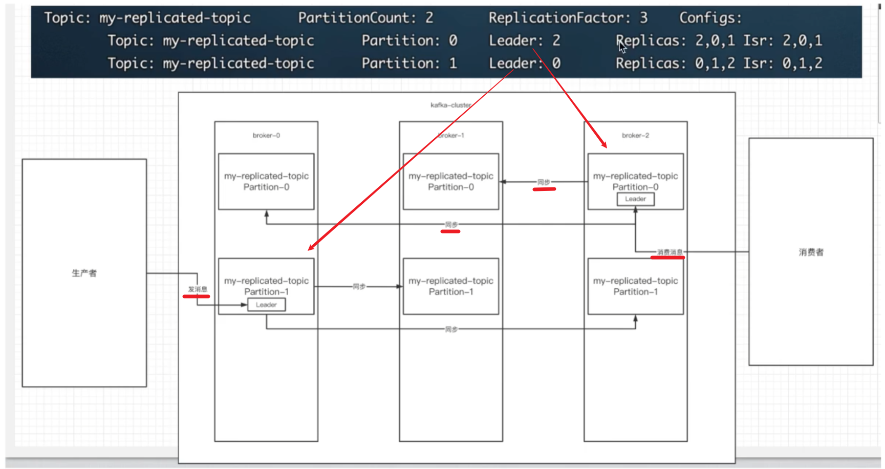 副本: 副本是对分区(partition)的备份,在集群中,不同的副本会被部署在不同的broker上,其中一个作为leader,其它的是follower。