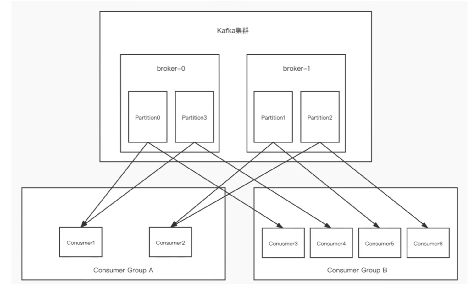 kafka 集群中 (kafka——cluster), 有多个 broker (kafka 进程),部署在多台服务器上 (也可以部署在一台服务器,学习用)。