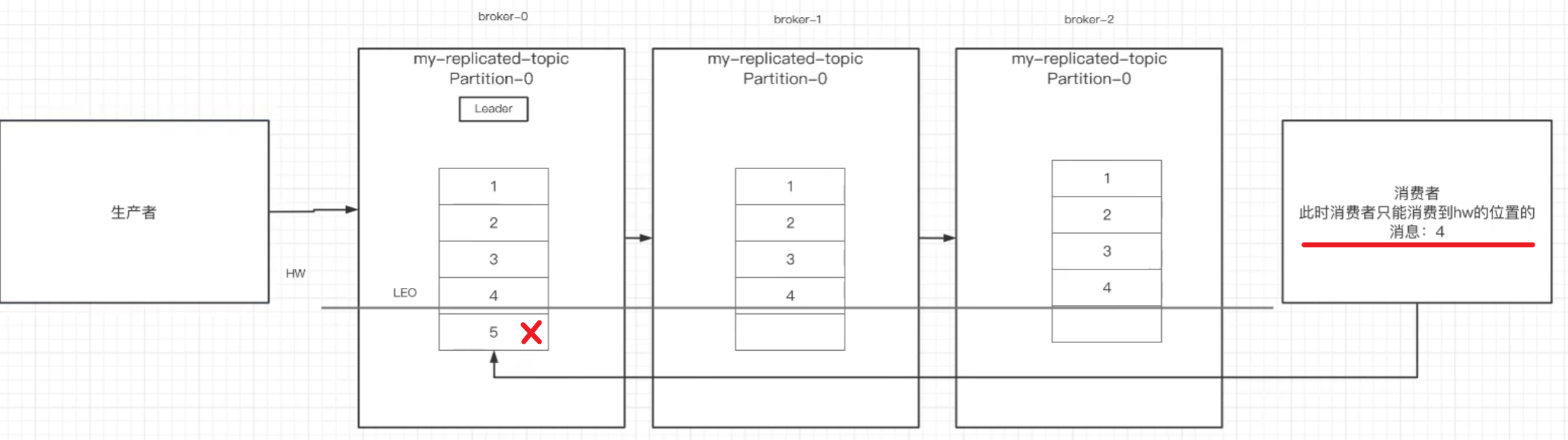 leader和follower都会保存并负责更新自己的 hw 。消息写入leader且 ISR 中所有都同步完这个消息后,hw才会变化。消费者最多都读到 hw 的位置,即使 leader 的 leo 大于 hw。这样的机制能够保证消息不丢失。
