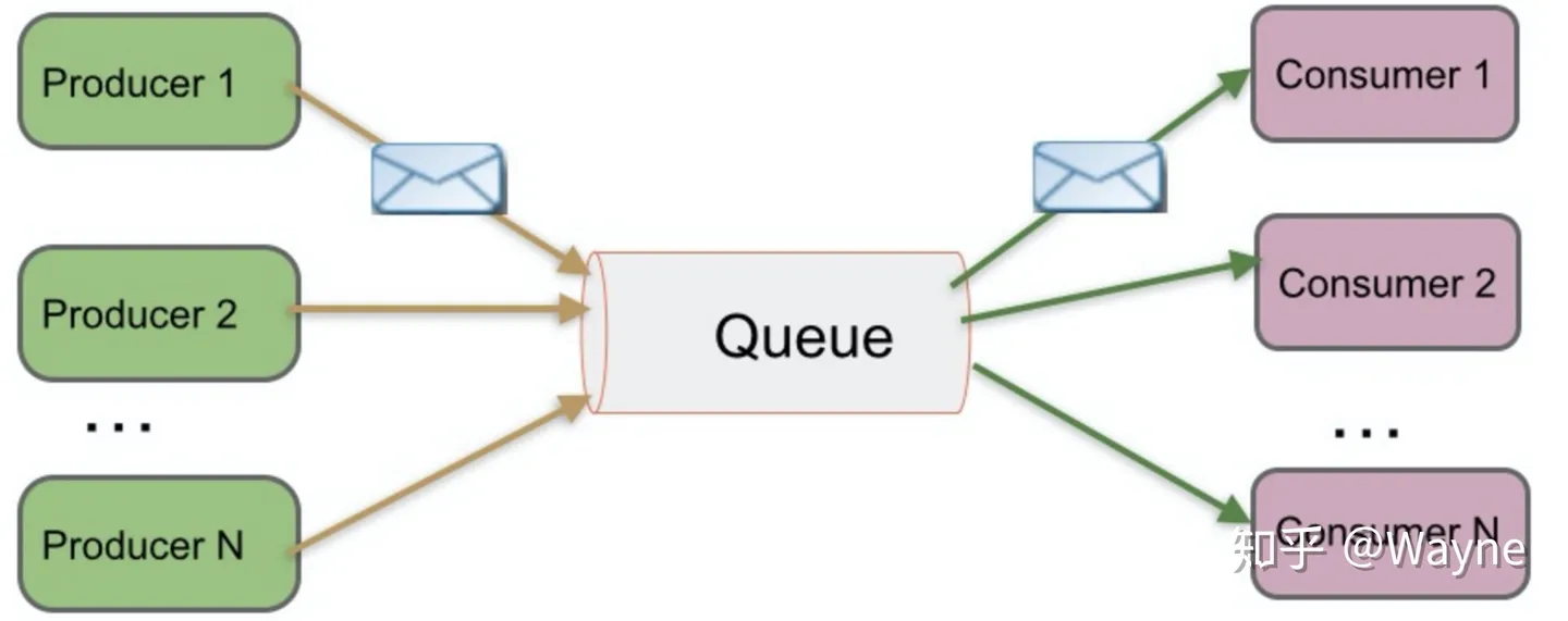 Queue将不再存储消息,其它所有Consumer不可能消费到已经被其它Consumer消费过的消息。 Queue支持存在多个Producer,但是对一条消息而言,只会有一个Consumer可以消费,其它Consumer则不能再次消费。- 但
